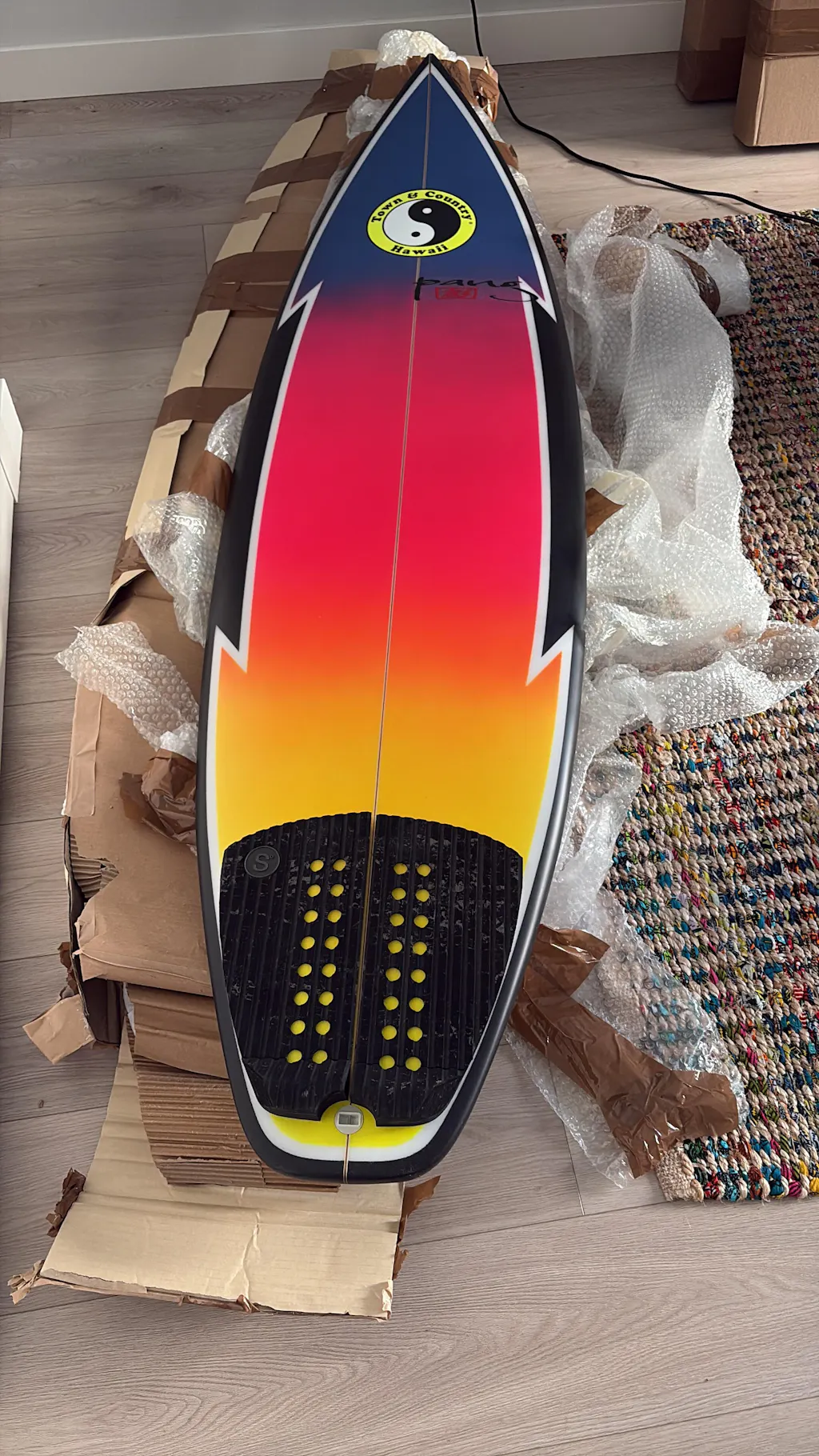 Le rocker est léger sur toute la planche et l'outline harmonieux. Simple à double concave avec un léger vee au niveau du tail. Incisive et réactive dans les parties creuses de la vague, elle excellera dans les barrels !